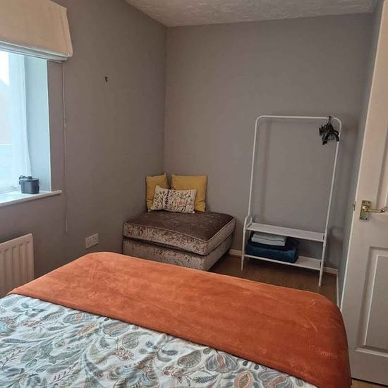1 double room to rent - Can be furnished, partly furnished or unfurnished. Furniture in image, just for size reference. Bed and clothes railing/wardrobe will be replaced if furnished room is required. Shared living room, bathroom with bath/shower, large kitchen with dining area, downstairs toilet and large Garden. Off street parking. Additional storage in small garden shed and in the loft. Fridge and washing machine also included. Shops and bus stops all within walking distance (Co-op, Lidl, Tesco, Pubs) - around 10 to 20 minutes or so. More...