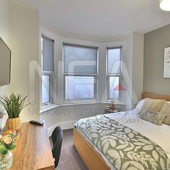 Room One & Ensuite A carpeted bedroom on the ground floor at the front of the property with a frosed bay window overlooking quiet cul-de-sac. Furniture includes double bed, bedside table, desk, chair and built-in wardrobe. Door to ensuite shower room which has cubicle shower, WC, sink set in cupboard and heated towel rail. A large communal kitchen which benefits from breakfast bar and plenty of workspace and storage for each room. Appliances include 2 x fridge/freezer, oven and 4 ring hob with extractor, washing machine and tumble drier, sta...