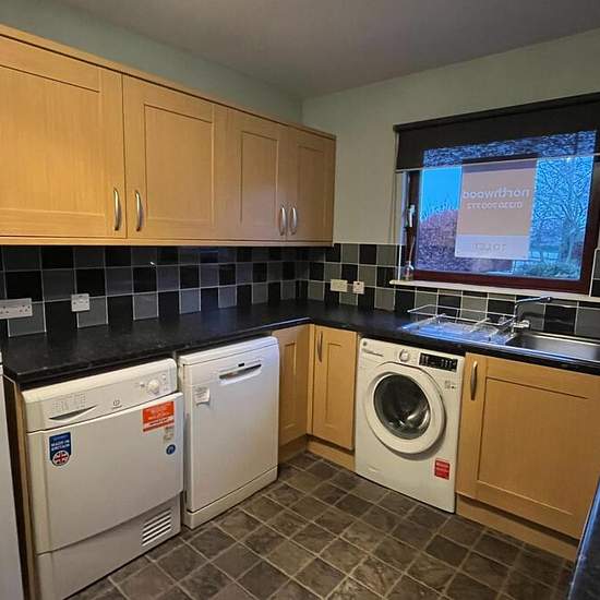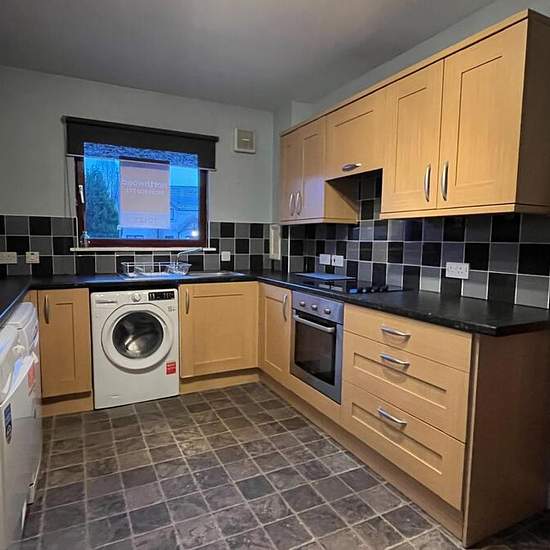 This property comprises of entrance hallway with two storage cupboards; kitchen/diner with fridge freezer, electric hob and oven, dishwasher, washing machine and tumble dryer, ample space for a dining table; living room with patio doors leading out to the rear garden, there is also a vestibule at the back door of the property. Upstairs comprises of cupboard with that houses the hot water tank, but also allows for storage space; two double bedrooms, both with built in wardrobes; bathroom with electric shower over the bath, there is also acce...