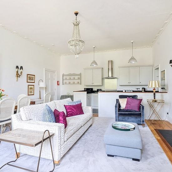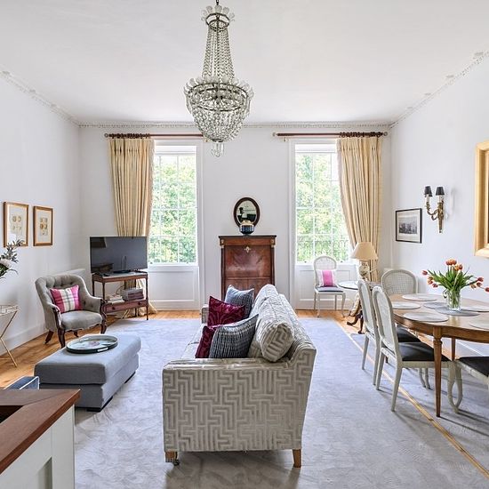 Premium - All-Inclusive Short Let This stunning apartment offers the most beautiful views from both the front and rear of the property. This apartment exudes quality and is within a Grade I listed house with exceptionally restored communal hallway, staircases and landings. The property includes a living room with additional study, a well-equipped kitchen/breakfast room and a light and airy reception hallway. The two bedrooms are generously sized and are served by the principal bathroom and shower room. Sydney Place terrace has wonderful ar...
