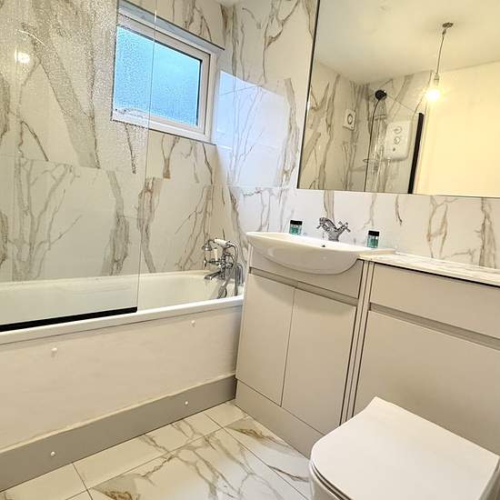 Zero Deposit Guarantee Available In brief this first floor flat comprises of entrance hallway leading to spacious reception room. Brand new fitted kitchen with integrated cooker and fridge freezer. Modern family bathroom with shower over bath, WC and hand basin. One double bedroom with large fitted wardrobe space, one ample sized single. Double glazing and electric heating throughout. Off road parking. Available for immediate occupation. EPC: C. Tenancy term: 12 months. Council tax band: A Council Tax Band: Holding Deposit: £225.00 ...