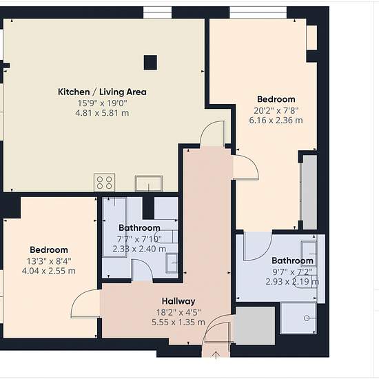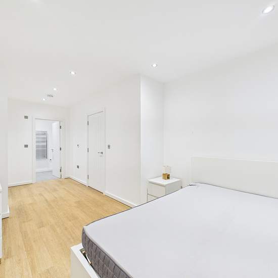 This modern two-bedroom apartment offers bright and spacious living, featuring an open-plan kitchen and reception area with sleek fitted units and integrated appliances. Floor-to-ceiling doors flood the space with natural light creating the perfect setting for relaxing or entertaining. The property is finished to a high standard throughout with contemporary décor and wood flooring. Both bedrooms are very large , with the principal bedroom benefiting from generous space and excellent natural light. There are two stylish bathrooms, including a...