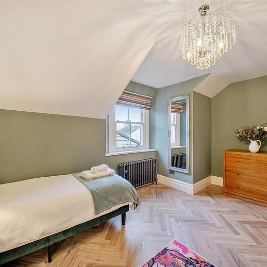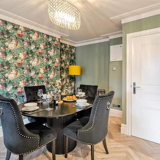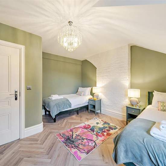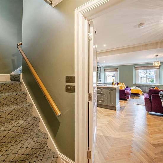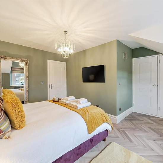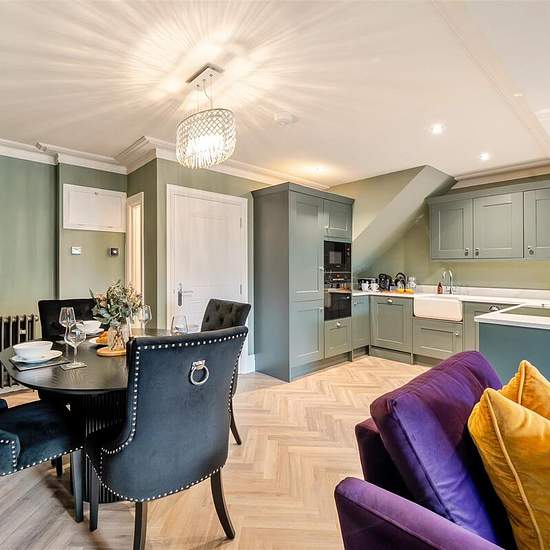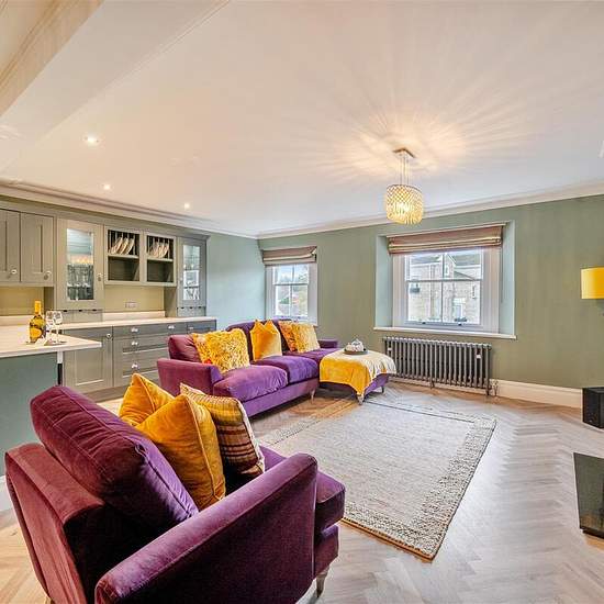 A newly renovated Painswick apartment, just a short walk from Cirencester's lively pubs, caf�s, and shops, offers a striking blend of Victorian opulence and contemporary Cotswold charm. Its rich green and deep purple palette, accented with touches of gold, creates a bold yet inviting atmosphere. Spanning two floors, the apartment comfortably sleeps four with a King bedroom and a twin room, both designed for ultimate relaxation. The open-plan kitchen, dining, and lounge area is fully equipped, making it an ideal space to unwind. Housed in the...