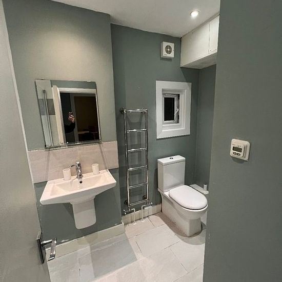 Lovely two bed two bath first floor flat in a converted house in the centre of Edgware. Modern open plan kitchen/living room, family bathroom, one standard double bedroom with en-suite shower and one small double bedroom, 5 minutes walk to Edgware shopping centre, bus garage and underground. References and 5 weeks deposit required. Ideally suited for 2 professionals or small family. No agents or company lets please.