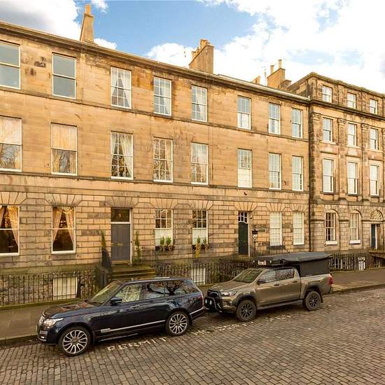 This stunning second-floor flat offers a perfect blend of classic charm and modern comfort in the heart of Edinburgh’s desirable New Town. Positioned on peaceful Drummond Place, the property boasts beautiful open outlooks and access to private communal gardens. Inside you will find a bright and spacious living room featuring large sash windows that flood the space with natural light, complemented by tasteful neutral tones and contemporary furnishings. The stylish, fully equipped kitchen includes Bosch and AEG appliances, such as a gas hob, d...