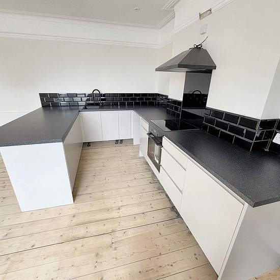 A stunning TWO DOUBLE bedroom first-floor apartment offers an impressive and spacious open plan modern fitted kitchen complete with appliances for added convenience leading into the lounge area with impressive views of the sea. The new white suite bathroom adds a touch of elegance to the space. Recently refurbished to a high standard, this property is available for long-term tenancy. Enjoy the comfort of double glazing and new efficient electric heating throughout the flat. Situated just a short walk from popular bars and restaurants, reside...