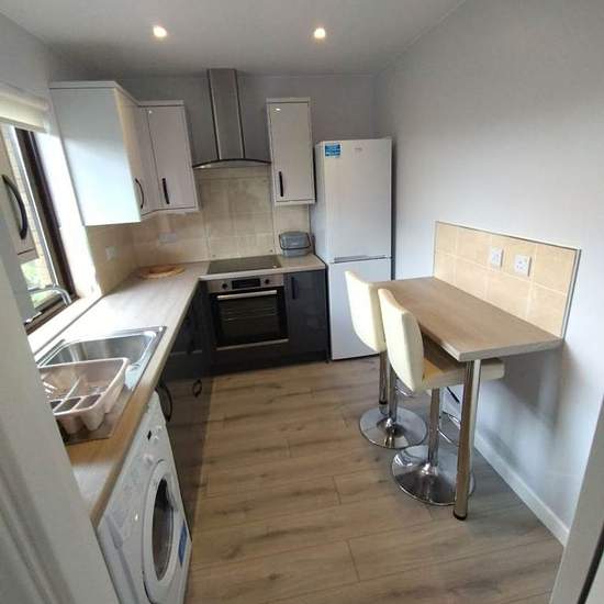 Fully refurbished first floor flat with private entry door in immaculate condition in Central Falkirk within 10 minutes walk from Central Retail Park and Grahamston Train Station. Private car parking. Accommodation comprises internal stair to Landing, Living Room, Kitchen, 2 Bedrooms with fitted wardrobes and Bathroom with walk in shower. Double glazing, electric heating. No smokers, no pets. Council tax band C. EER band D Available now