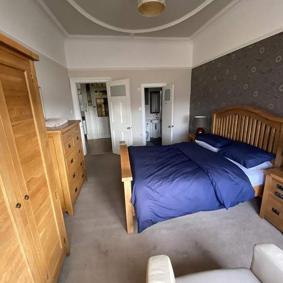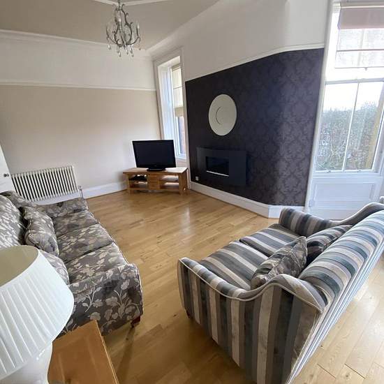 Impressive 2nd floor red sandstone flat with feature corner bay window. The accommodation comprises security entry with well maintained communal stairway. Stunning main lounge with five section corner bay and solid oak flooring. Quality contemporary dining kitchen. Master bedroom with solid oak furniture and modern en suite shower room. Spacious second bedroom with solid oak furniture. Contemporary bathroom with underfloor heating and Jacuzzi bath. Walk in storage cupboard. Gas central heating with new boiler. Council tax Band E.