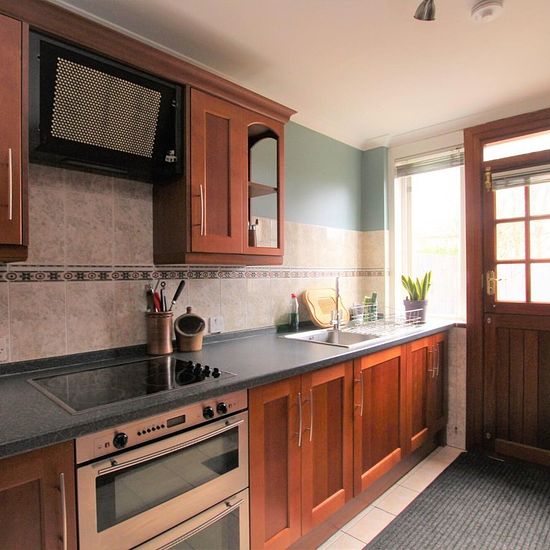 This beautifully furnished two-bedroom terraced house is available in the Knightswood district of Glasgow.The property comprises; entrance hallway; living room with a fire surround and dining table, a fully fitted kitchen with integrated appliances; including a dishwasher, a box room ideal home office. Stairway leading to two double bedrooms with free standing storage, a three piece shower room, and a converted attic which is accessed from a loft hatch using a retractable ladder.Further benefiting from double glazed windows throughout, gas c...