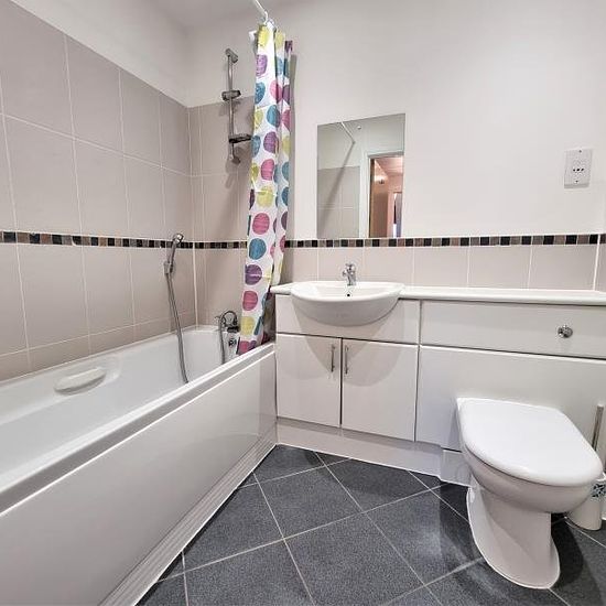 FURNISHED. A stunning and prestigious top floor two double bedroom and two bathroom apartment set in a gated development in the heart of Burpham. The property benefits from an entrance hall with video entry system leading through to a large reception/dining room with a juliette balcony and lovely views over the communal grounds. There is a well equipped kitchen with high spec appliances. The master bedroom benefits from an ensuite. There is a second double bedroom and a separate bathroom with shower and WC. Redecoration throughout. There is ...