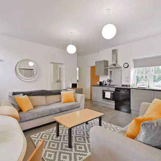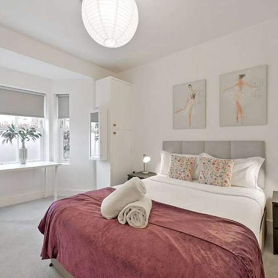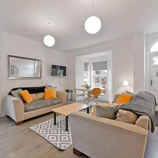 All inclusive short let. This is an attractive ground floor apartment offering an open plan kitchen and living area. The apartment has a master bedroom with a bay window, a second bedroom with en suite shower room and a separate family shower room.