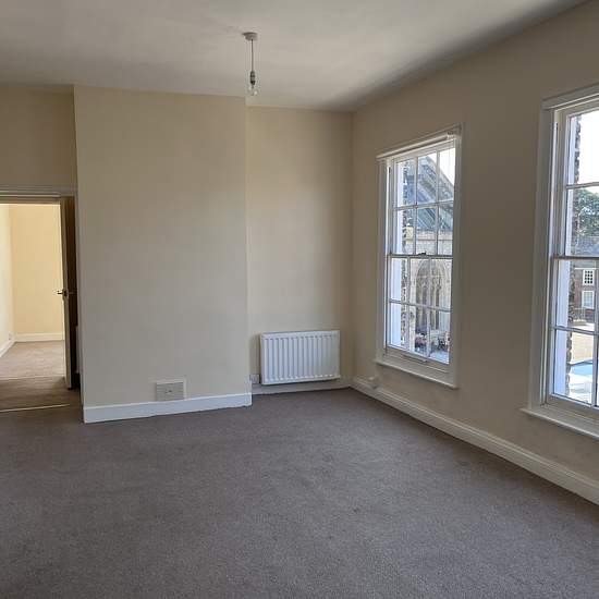 Situated in the Historic part of King's Lynn and overlooking St. Magarets Church (King's Lynn Minster). On the corner of the High Street and Saturday Market Place. Spacious two bedroom second floor apartment with electric heating, Available now and offered un-furnished. Accomodation: Shared Entrance Wooden secure entrance door, stairs to first and second floor shared with one other apartment and a business. Entrance Hall Storage cupboard doors to; Bedroom One (3.84m x 3.42m 12'7" x 11'2") Curved wall with windows to the front and side aspect...