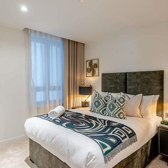 A luxurious interior designed Three-bedroom 3rd floor apartment set over 1021 SqFt comprising a large open-plan reception room leading onto a private balcony. The fully integrated kitchen with appliances from Siemens and Miele including oven and induction hobs, large fridge freezer and dishwasher and wine chiller all inset into a composite stone work tops. The whole apartment also benefits from comfort cooling. The apartment has two double bedrooms with the master including an En-suite and a family bathroom. This apartment comes complete wit...