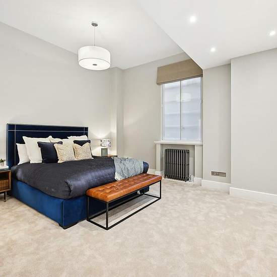 This lateral apartment comprises of two generously sized double bedrooms, both with ample storage space and en-suite bathrooms ensuring the utmost privacy. There is also a large reception room with large windows, flooding the room with natural light. The kitchen contains fully fitted appliances perfect for hosting at any time of the year. Residents also benefit from a communal garden as well as a 24 hour porter. Located in the heart of Mayfair, Grosvenor Square is central to the world renowned shopping districts of Oxford Street, New Bond S...