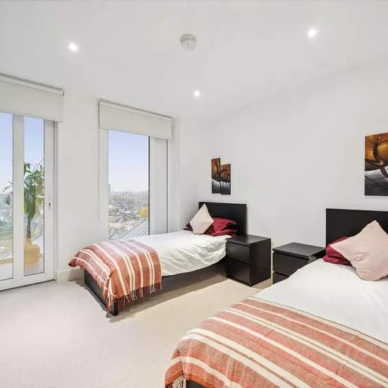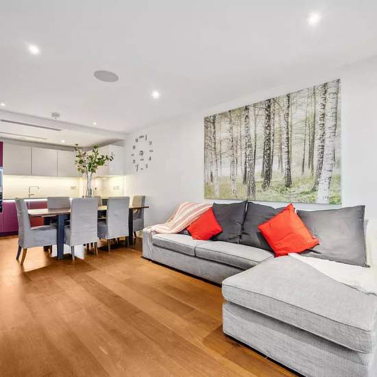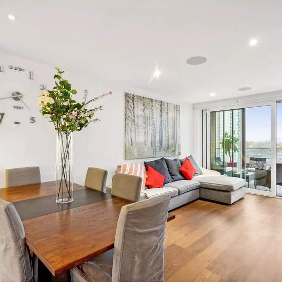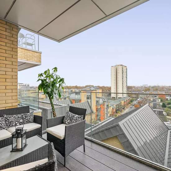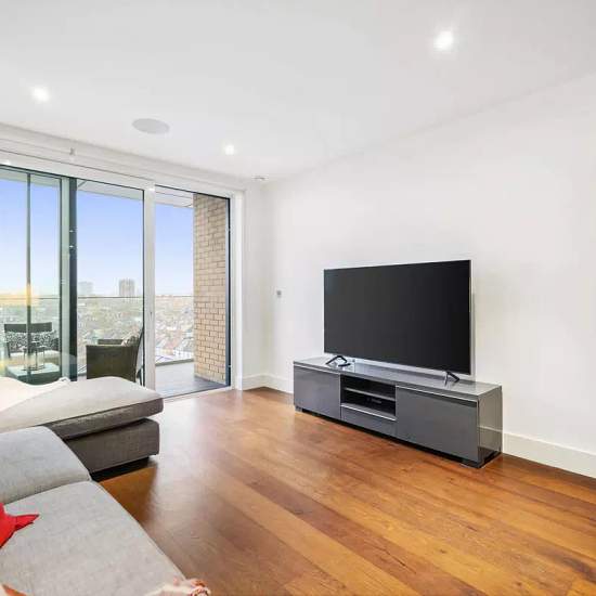 Indulge in the epitome of luxury living with this exquisite property. Impeccably furnished, it presents an open plan reception room and a brand new kitchen adorned with state-of-the-art appliances. Step out onto the expansive balcony and be captivated by breathtaking views of London's majestic rooftops. The master bedroom, adorned with ample storage, beckons you to unwind in its lavish en-suite, complete with a rejuvenating walk-in shower. A second double bedroom offers guests the ultimate comfort, while a family bathroom awaits with its op...