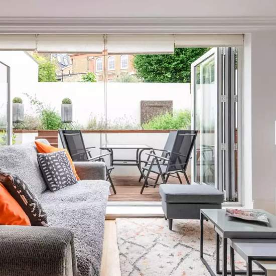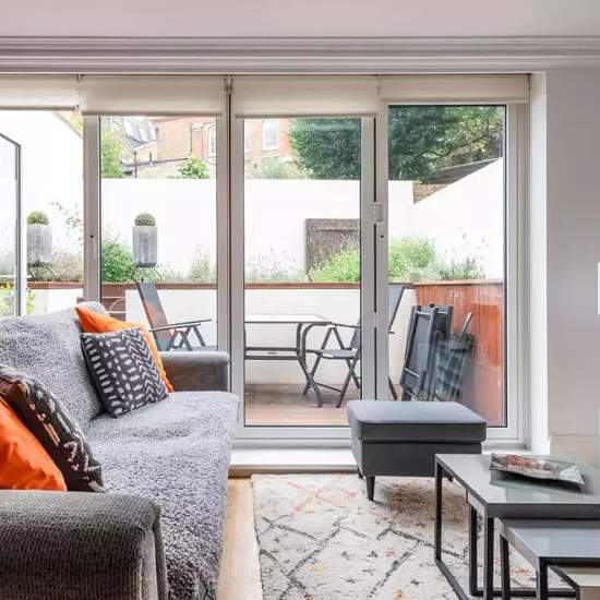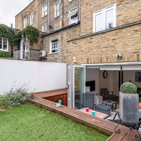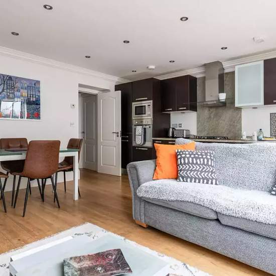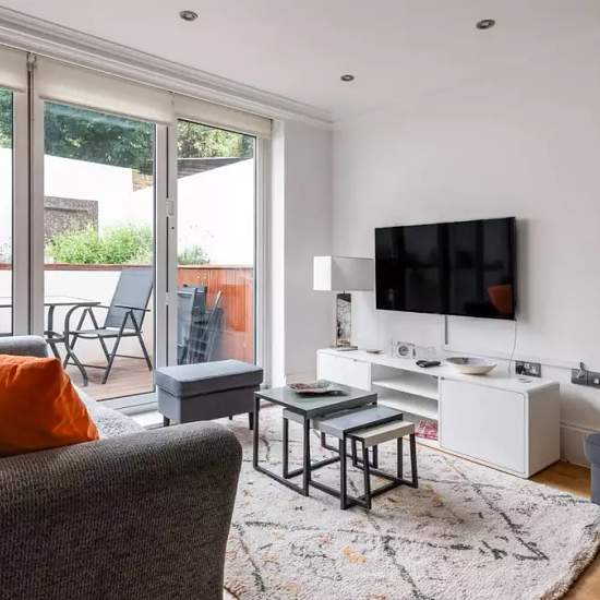 Furnished 2-bedroom apartment for rent on Malden Road. The property includes tv, oven, terrace, and dishwasher. This two bedroom apartment is situated in the idyllic area of Kentish Town. Located on the ground floor, this beautiful London flat can comfortably accommodate up to four people. The smoke-free property features a living room, two bedrooms, two bathrooms and a kitchen. The living room is equipped with a comfortable sofa, a dining table and a TV. The kitchen is fully equipped with modern appliances and includes all cooking utensils ...