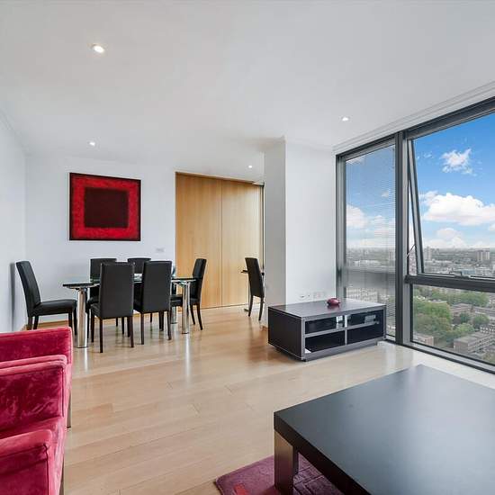 We are pleased to offer this apartment located on the 23rd floor of the No.1 West India Quay development. The apartment is set over approximately 83.71 sq m (approximately 901 sq ft) and offers open plan reception room, fully fitted kitchen, 1 principle bedroom with en suite, one double bedroom with guest bathroom and 1 parking space. The apartment is offered on an furnished basis. EPC: B Additional information We have made reasonable enquiries regarding the fire safety (including, but not limited to, the external wall of the building), but ...