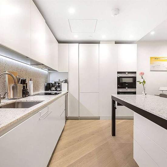 A wonderful two bedroom apartment in the iconic Television Centre located on the first floor of this highly coveted crescent building. The apartment offers a spacious reception/kitchen area: with luxury built in appliances, a brilliant amount of light and large glass bi-folding doors opening up onto a balcony the length of the apartment. The property has two double bedrooms and two bathrooms (one en-suite), both offering a large amount of storage. The Television Centre further offers excellent local amenities and access to the private member...