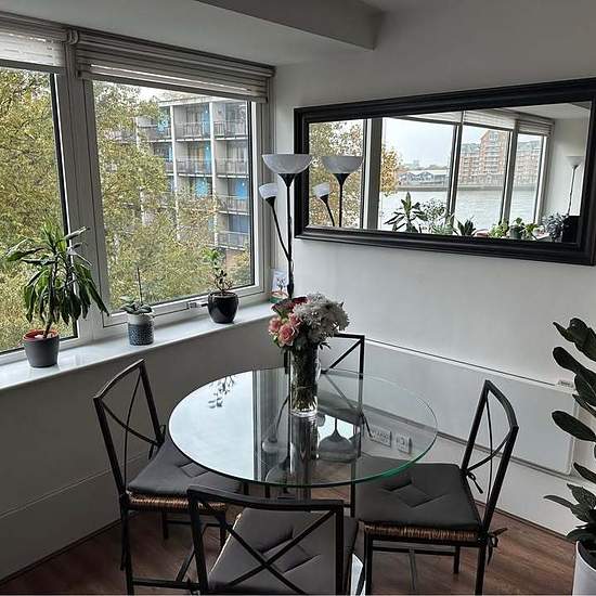 River view apartment between Canary Wharf and the City. Bright, spacious and warm fully-furnished apartment with 2 double bedrooms (currently second bedroom is used as a study/guest bedroom with desk and double sofa-bed) spread over 2 floors with kitchen/living room/dining area (all with plenty of storage), bathroom and a small balcony, available to rent from early January. Would be perfect for an individual, couple, small family or 2 adults. Perfectly located beside the Thames and near to the Surrey Docks and water-sports areas, it has exce...