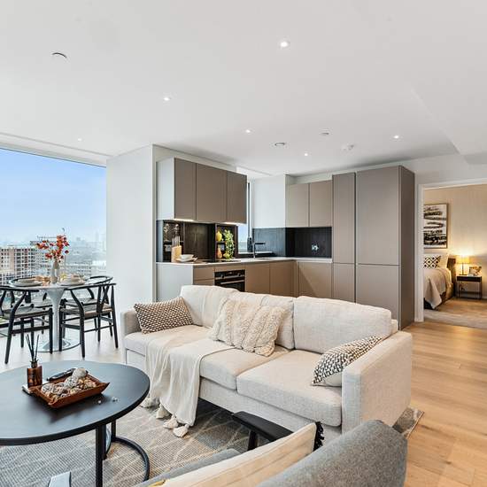A truly stunning two bedroom, two bathroom apartment with gorgeous views of the Thames from the 11th floor. The apartment comes with underfloor heating, a beautiful open plan kitchen, residents gym and 24hr concierge service. The apartment boasts a Poggenpohl kitchen with Corian worktop and integrated Siemens appliances, bathrooms with porcelain tiles and custom timber veneer vanity units, engineered timber flooring to living areas, Poliform free-standing wardrobes to all master bedrooms and floor to ceiling double-glazed windows. Further sp...