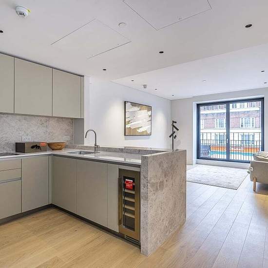 SHORT LET Located in one of Marylebone's newest developments is this stunning two double bedroom apartment to let. Finished to an exceptional standard and with benefits including a day concierge, residents gym and lift access. Offering over 800 square feet of lateral living space and with accommodation comprising a spacious open plan reception and modern kitchen, main bedroom with fitted wardrobes and en-suite bathroom, a second double bedroom with fitted wardrobes and a second tiled bathroom with bath and shower. Finished with neutral décor...