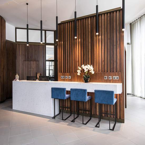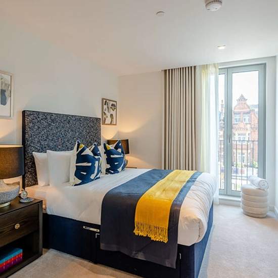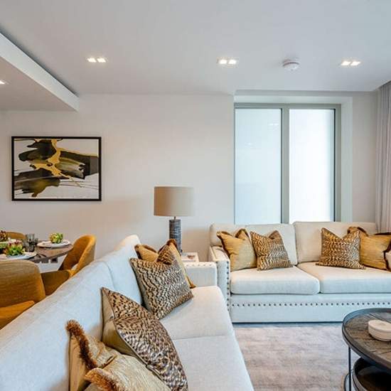 A luxurious interior designed two-bedroom 2nd-floor apartment set over 841 SqFt comprising a large open-plan reception room leading onto a private balcony. The fully integrated kitchen with appliances from Siemens and Miele including oven and induction hobs, large fridge freezer and dishwasher, and wine chiller all inset into a composite stone work tops. The apartment has two double bedrooms with the master including an En-suite and a family bathroom. The whole apartment also benefits from comfort cooling. This apartment comes complete with ...