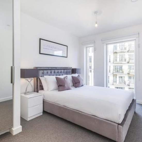 Second Floor Two Bedrooms Two Bathrooms 0.2 miles to Canning Town station Furnished Council Tax - C This stunning two bedroom, two bathroom apartment is located within the latest phase of the Rathbone Market development. The property offers a bright and airy open plan lounge/kitchen area which is separated with a smart breakfast bar, two private south facing balconies offering extensive views, two good sized double bedrooms, one of which benefits from a smart en suite shower room, a further family bathroom and ample storage throughout. The ...