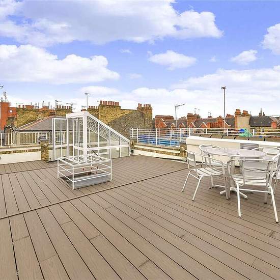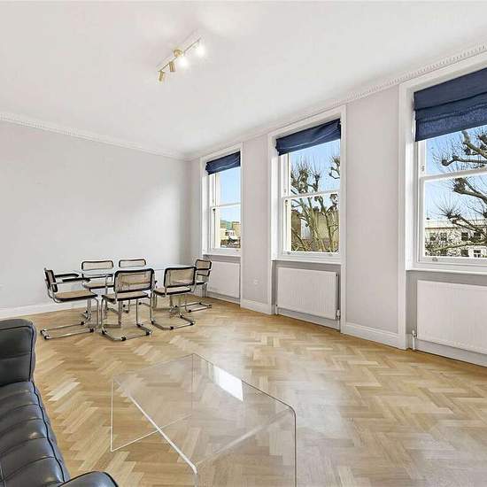 Located on the third floor of a handsome period conversion on Earl's Court square is this charming flat. There is a spacious reception room with three large windows overlooking the garden square and allowing ample light. Both the reception room and the hallway have attractive parquet flooring. There is a separate kitchen with fitted appliances and stairs up to the vast roof terrace, one of a very few on the square, which benefits from the sun all day and is not overlooked. The principal bedroom features ample built in storage and en-suite ba...