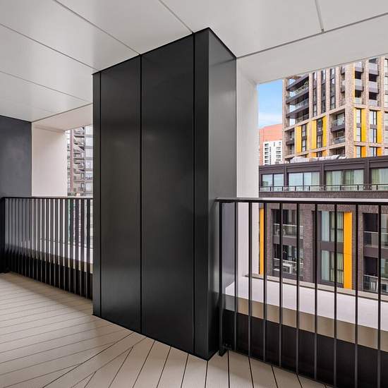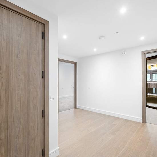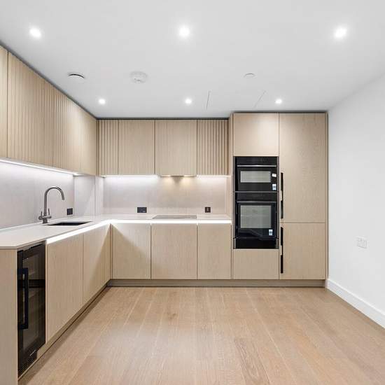A brand newly finished two double bedroom apartment, beautifully designed featuring an open-plan reception kitchen and a private balcony. The bespoke kitchen benefits an elegant timber cabinetry and a concrete-finish composite stone worktop, complemented by a gunmetal undermounted sink and a 3-in-1 hot water tap. Fully integrated appliances include an induction hob with oven, warming drawer, combination microwave oven, dishwasher, fridge freezer, and a black anthracite wine fridge. The open-plan living area is flooded with natural light thro...