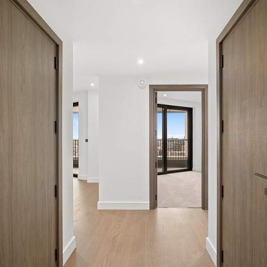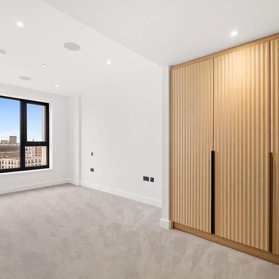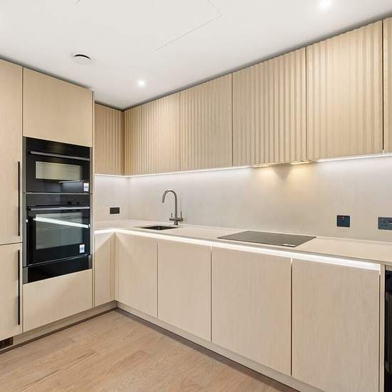 You could be the first to live in this brand new two double bedroom, two bathroom apartment, beautifully designed with an open-plan reception kitchen, en-suite bathroom and a private balcony. The bespoke kitchen incorporates timber cabinetry and a concrete-finish composite stone worktop, complemented by an undermounted sink and a 3-in-1 hot water tap. Fully integrated appliances include an induction hob with oven, warming drawer, combination microwave oven, dishwasher, fridge freezer, and a black anthracite wine fridge. The open-plan living ...