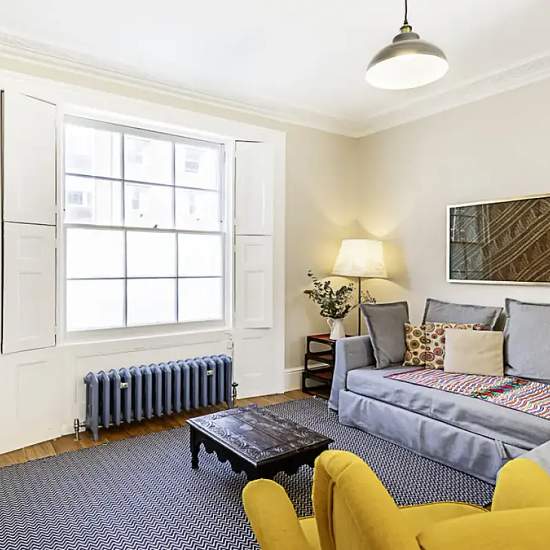 This two bedroom is situated in the idyllic area of Central London. The property is also just 0.6 miles from King Cross St.Pancras Underground Station making this property the perfect location for your stay in London. This beautiful Central London flat can comfortably accommodate up to five people. The smoke-free property features a living room, two bedrooms, one bathroom, a kitchen and a beautiful patio. The living room is equipped with a comfortable sofa, a dining table and a TV. The kitchen is fully equipped with modern appliances and inc...