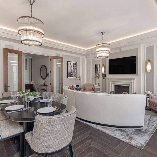 This distinctively appointed apartment is situated in a refined stucco-fronted building in Kensington. It has a spacious reception room with three large windows that bring in plenty of natural light throughout the day. The kitchen, which is connected to the reception room through bifold doors, has oak flooring, marble worktops and built-in units as well as an integrated oven, induction hob, microwave, fridge-freezer and dishwasher. The apartment also comes with two bedrooms with ample storage space.