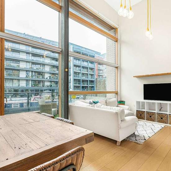 Benyon Wharf offers peaceful canal side living, along with convenient access to the city. The apartment is arranged over two floors and comprises an open plan fully fitted kitchen and reception room, modern bathroom and a large double bedroom on the lower level. Above the reception room is a mezzanine level forming the second bedroom. With large windows and high ceilings the property enjoys plentiful light and space. It also boasts wooden floors throughout, stylish modern décor and a very large west-facing balcony overlooking Regent's Canal ...