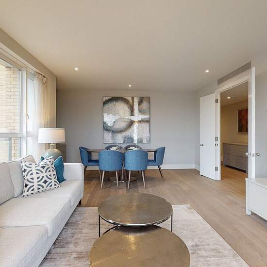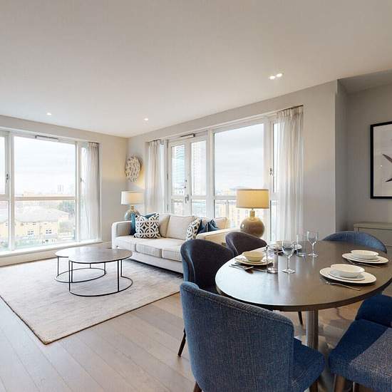 *A video tour is available* A two bedroom, two bathroom apartment situated on the second floor of a waterfront development, located in the iconic Westferry Circus area of Canary Wharf. The property is newly refurbished and arranged over 908 square feet (about 84.36 square metres) and comprises a large reception room with dining area and access to a private balcony, separate fully integrated and fully equipped kitchen, two double bedrooms with fitted cupboards, smart TV sets and king size beds, and two bathrooms (one en-suite with shower and ...