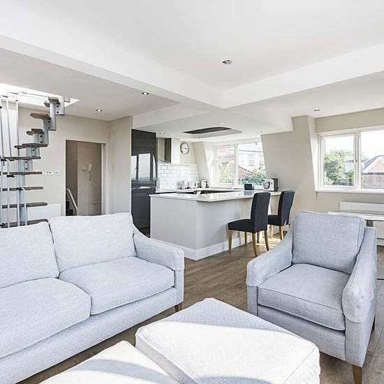 SHORT LET An exceptional two double bedroom apartment ideally situated in the heart of Hampstead Village, just moments from excellent transport links, boutique shops and renowned restaurants. The property features a spacious open-plan kitchen and reception area, a principal bedroom with en suite shower room, and access to a superb private roof terrace offering stunning panoramic views across London. Perfectly positioned on Holly Hill, the apartment enjoys immediate access to the amenities of Hampstead High Street, with Hampstead Heath and it...