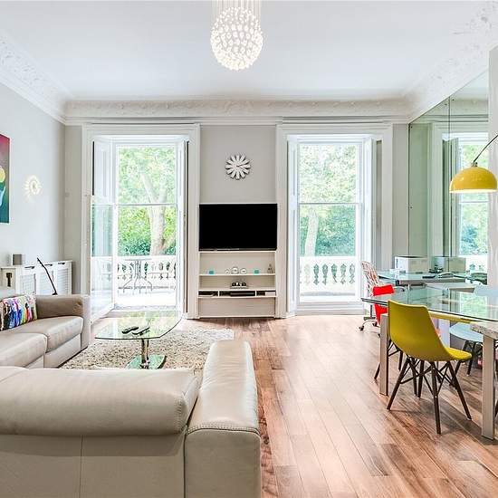 Short Let - An excellent recently refurbished 1st floor two bedroom, two bathroom apartment in this attractive white stucco fronted building, situated in the heart of South Kensington. The accommodation comprises of a large reception room with high ceilings and ornate period detailing with a balcony overlooking the garden square, open-plan fully fitted kitchen with high end NEFF applicants and stone worktops, two double bedrooms and two bathrooms. The property is located within close proximity to local amenities of the area and is within eas...