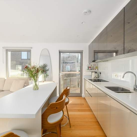SHORT LET - BILLS INCLUDED A smart and well presented modern two bedroom fifth floor apartment in the ever-popular Bywell Place Development, available for short let. The apartment is in excellent decorative order throughout and boasts wooden flooring, plenty of storage and lots of natural light, offering dual aspect windows in the living room and floor to ceiling windows in the bedrooms. The property offers a balcony from the living room, which is open-plan to a fully integrated, sleek kitchen. There are two double bedrooms with the princi...
