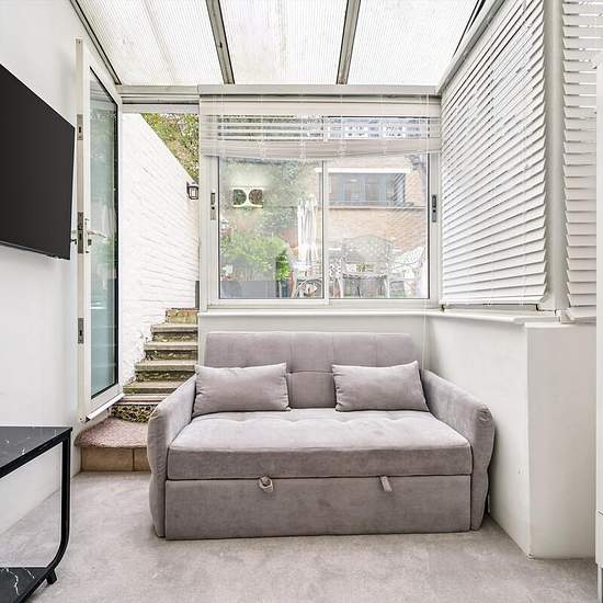 Arranged over two floors and spanning approximately 830 sq ft, the property is entered on the ground floor through a welcoming hallway that leads to a bright reception room with elegant period features and an impressive ceiling height of 3.07 meters. To the rear, a separate kitchen enjoys views over the garden, creating a tranquil setting for everyday living. The lower ground floor comprises a spacious principal bedroom and a second bedroom that can also serve as an additional reception space. This room opens into a delightful conservatory d...