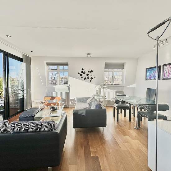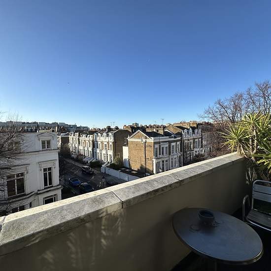 Short let Two bedroom Epc - c Balcony Top floor Air conditioned **Zero Deposit Guarantee Available** A beautifully refurbished two-bedroom apartment set within an elegant stucco-fronted Victorian building on Elm Park Gardens, available for short-term letting. This exceptional south-facing home offers contemporary living with an abundance of natural light and has been finished to a high standard throughout. The apartment features a striking reception room with sliding doors opening directly onto a private, sunny terrace, creating an excellen...