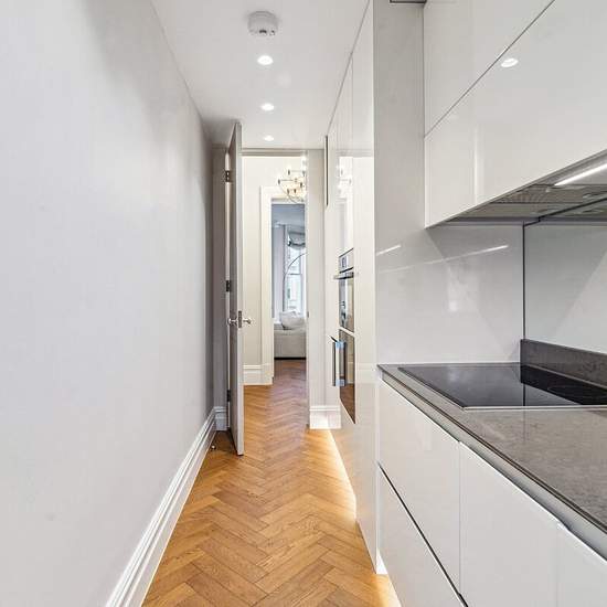 This stunning 2-bedroom, 2-bathroom first-floor apartment is situated in a highly sought-after location. It features a spacious reception room with ample dining space, a fully-equipped modern kitchen, and a generously sized master bedroom with an ensuite bathroom. The second bedroom is bright and includes fitted wardrobes, while the additional bathroom offers added convenience. The apartment boasts unique storage solutions throughout and is furnished to the highest standard. Ideally located just a short walk from the picturesque Holland Park...