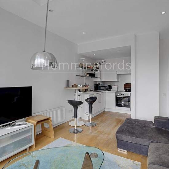 Nestled in the heart of Clerkenwell, this splendid third-floor apartment at St. John's Square offers a perfect blend of modern living and historic charm. Spanning nearly 700 square feet, the property is bathed in natural light, thanks to its impressive floor-to-ceiling windows that enhance the spacious feel throughout. Upon entering, you are greeted by a generous reception room that seamlessly integrates with an open-plan kitchen, creating an ideal space for both relaxation and entertaining. This area extends to a private balcony, perfect fo...