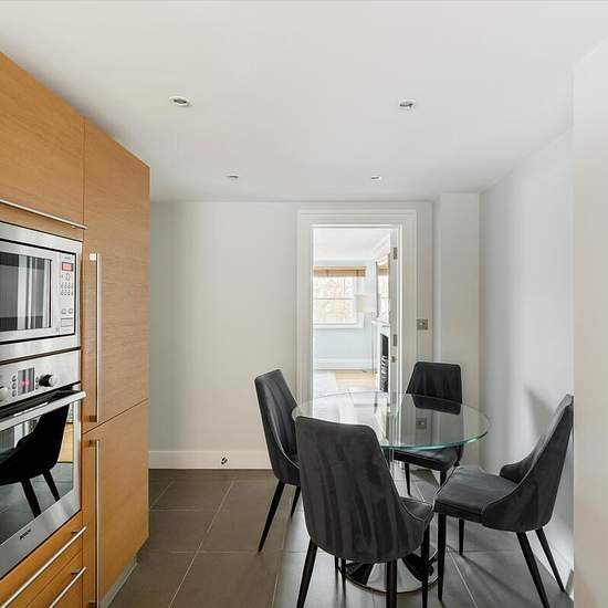 A spacious reception room sits to the front of the apartment, featuring wide windows that fill the room with light and offer an inviting setting for relaxing or hosting guests. Adjacent to this is a well‑appointed kitchen, thoughtfully designed with ample workspace and storage, making it both functional and enjoyable for everyday cooking. The apartment includes two large double bedrooms positioned towards the quieter rear of the property. Each bedroom benefits from fitted storage and a comfortable sense of space, offering peaceful retreats a...
