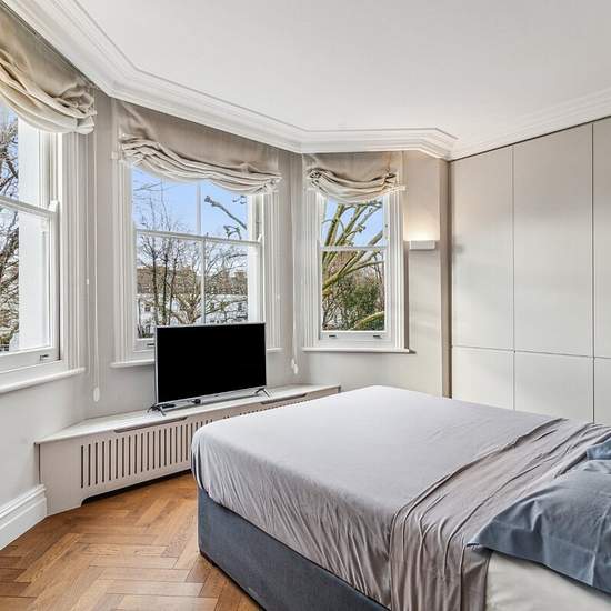 This stunning 2-bedroom, 2-bathroom first-floor apartment is situated in a highly sought-after location. It features a spacious reception room with ample dining space, a fully-equipped modern kitchen, and a generously sized master bedroom with an ensuite bathroom. The second bedroom is bright and includes fitted wardrobes, while the additional bathroom offers added convenience. The apartment boasts unique storage solutions throughout and is furnished to the highest standard. Ideally located just a short walk from the picturesque Holland Park...