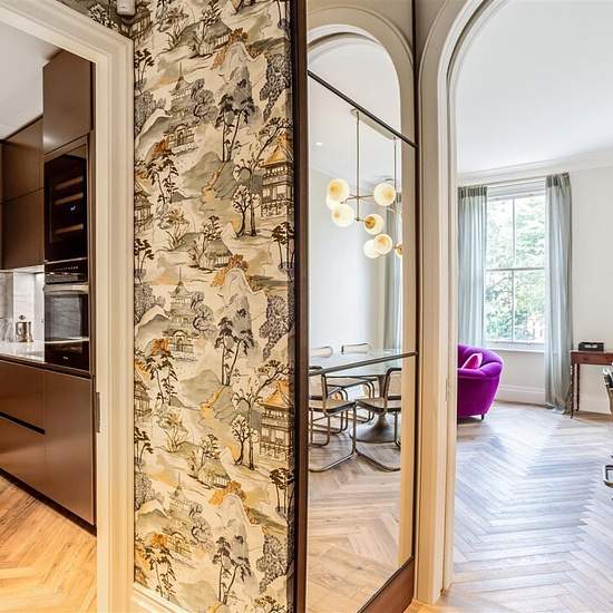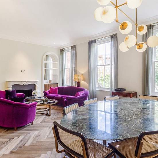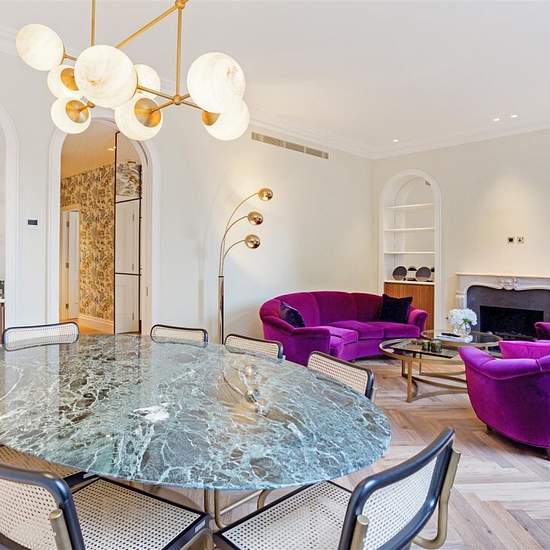 Elegant and refined lateral 2 bedroom 2 bathroom apartment which has recently been the subject of a full (back to brick) refurbishment to the very highest standard. Interior designed and curated, the apartment affords exceptional design and quality at every turn, with Italian flair allied to classical period English elegance. The apartment is situated on the second floor (with lift) with views over the communal gardens and is located on a marquee garden square in the prime Chelsea/Knightsbridge borders, a short walk from both Sloane Square (...