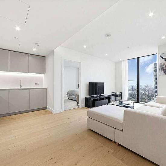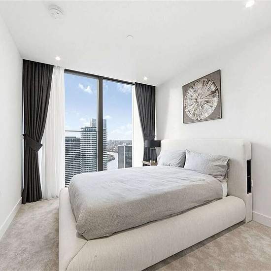 Stunning High-Floor Premium Apartment with Panoramic Dock & Skyline Views This exceptional premium apartment, positioned on a high floor, offers sweeping, uninterrupted views across the London skyline and South Dock. Beautifully designed and meticulously finished, the property features two generous double bedrooms, a luxurious contemporary bathroom, and an expansive open-plan reception room. The bespoke, fully integrated kitchen is equipped with Siemens appliances, reconstituted stone worktops, elegant glass splashbacks, and sleek handlefree...