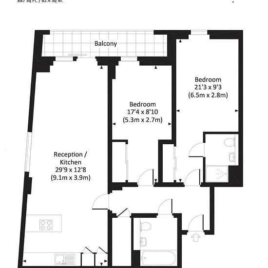Open plan kitchen/living area Ample storage Balcony 0.2 miles from Shadwell station Approx. 887 sq ft (82.4 sq m) Deposit: £2884.61 Located within the modern Chi Building on Crowder Street, this stylish two-bedroom furnished apartment offers contemporary living in one of East London's most characterful neighbourhoods. The thoughtfully designed interior features an open-plan kitchen and living area that maximises the 887 square feet of space, creating a sociable hub perfect for entertaining and everyday relaxation. The apartment benefits from...