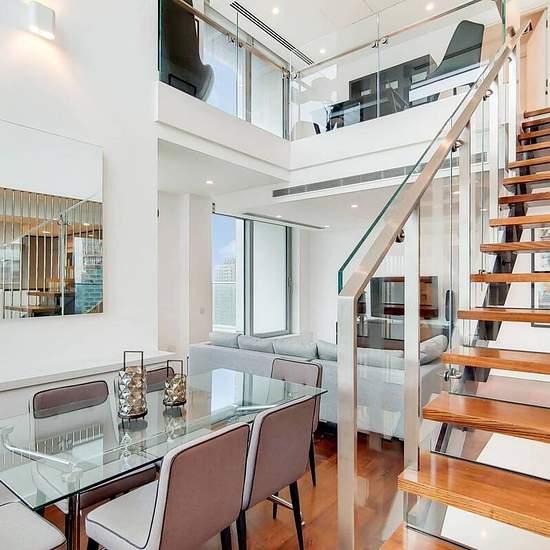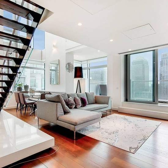 Duplex set over the 38th and 39th floors 2 Excellent balconies with view of River Thames Sleek kitchen with island and high spec finish Bright open plan reception and dining area Excellent study with stunning views 2 Double bedrooms with built-in wardrobes Luxury bathroom, ensuite showerroom and WC Set within a brilliant riverside building, a 2 bedroom duplex flat is offered in immaculate condition. It showcases luxe living with an open plan entertaining area, sleek kitchen and 2 balconies with river views. Pan Peninsula is in close proximit...