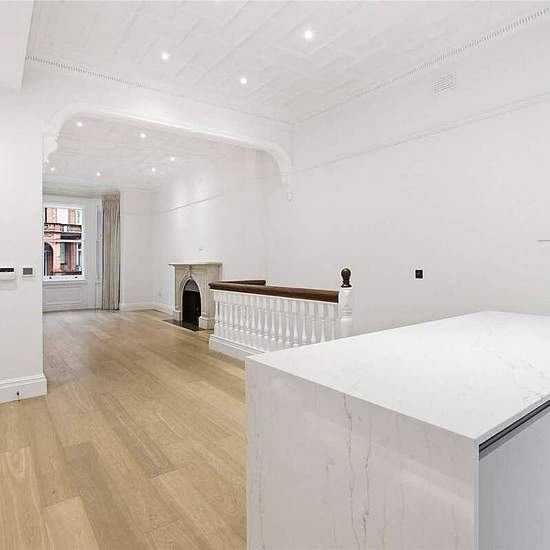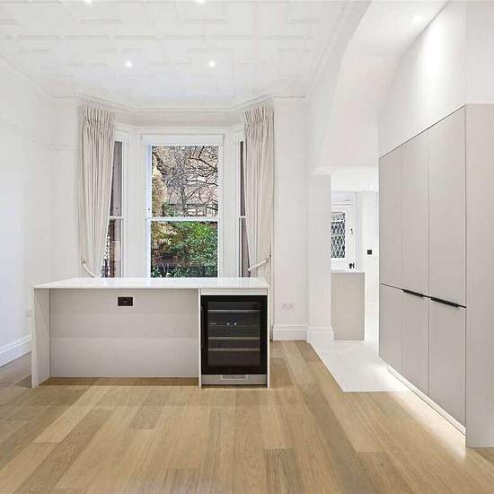 This stunning, newly refurbished apartment is available on an unfurnished basis, and located on Sloane Gardens. The flat benefits from direct access onto communal gardens as well as a stunning double reception room with high ceilings. The lower ground floor comprises a double bedroom leading on to a private patio with en suite shower room, a second double bedroom with en suite bathroom, a further dressing room and guest WC.