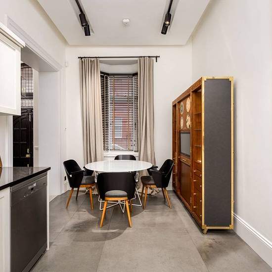 Set on the lower ground and ground floors of one of Cadogan Square’s most distinguished red-brick buildings, this elegant two-bedroom duplex offers over 2,100 sq ft of beautifully proportioned living space, with access to the Square’s private gardens by separate arrangement. The entrance opens on the ground floor into a generous central hall, leading through to a striking reception room that immediately sets the tone. With a ceiling height of over 13ft, tall bay windows and period detailing, it is a room of real presence, equally suited to f...