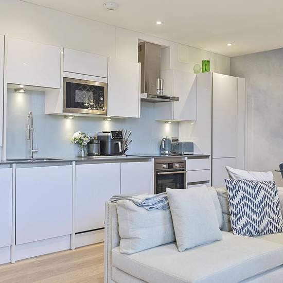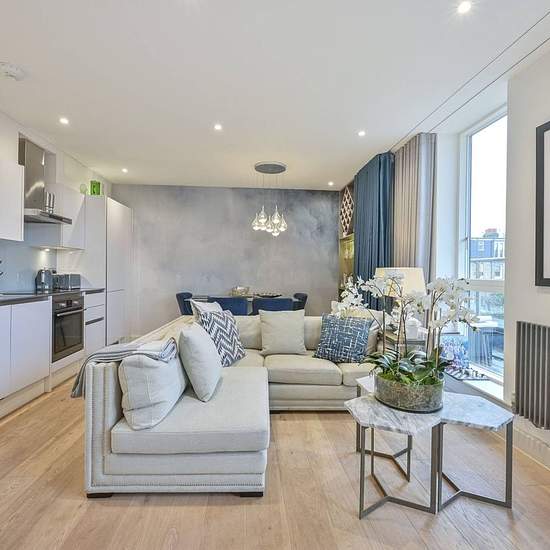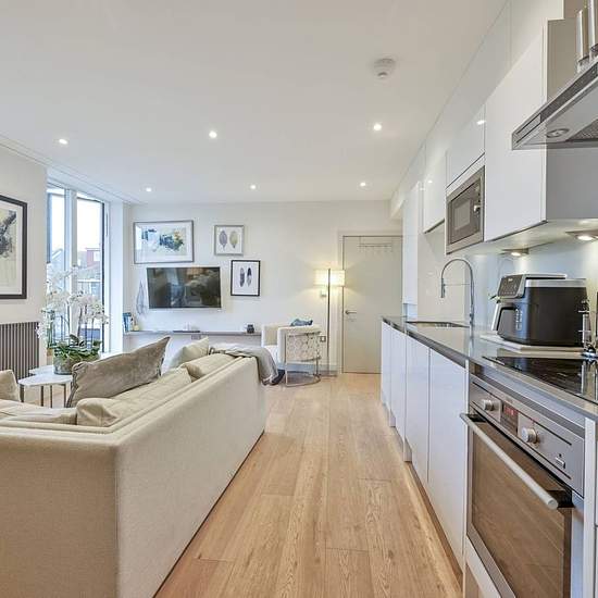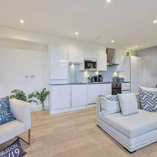 1st floor of a secure gated development Generous reception room with door to balcony Sleek open-plan kitchen with integrated appliances Main bedroom with fitted wardrobe, en suite and balcony Good-sized 2nd bedroom with fitted wardrobe Contemporary main bathroom Off-street parking space Communal roof terrace Available with Zero Deposit Featuring 2 private balconies, this stunning 2 bedroom 2 bathroom apartment offers chic modern living space with high ceilings, beautiful natural light and elegant interiors. The amenities of Kingston Road are...